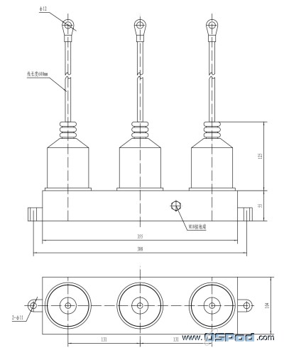 一、上面三个相柱分别接A、B、C三相,产品在保持原安装尺寸的前提下,增大相间绝缘距离,提高了产品的安全性能。